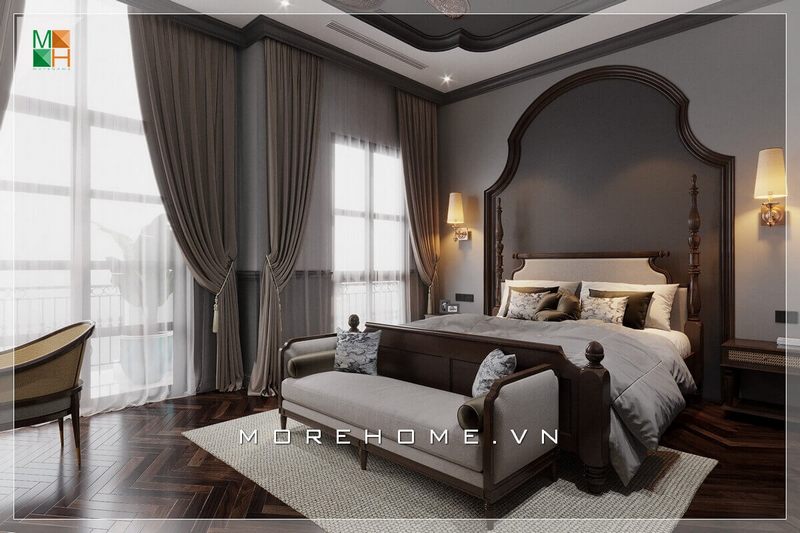 Mẫu giường ngủ tân cổ điển khung gỗ rất ấn tượng và đẳng cấp.