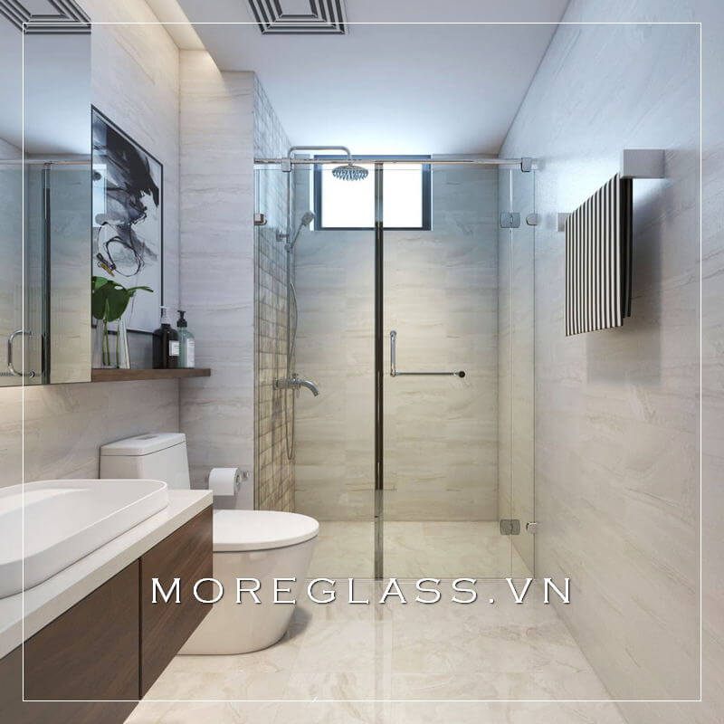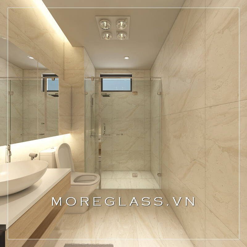 Mẫu thiết kế phòng tắm cao cấp được trang bị với phòng tắm kính nhỏ nhắn, các tiện nghi giúp phân chia không gian tắm và nội thất, cũng như các thiết bị bên ngoài.